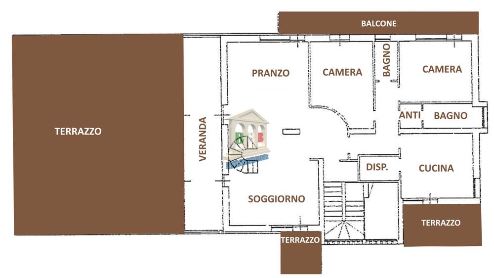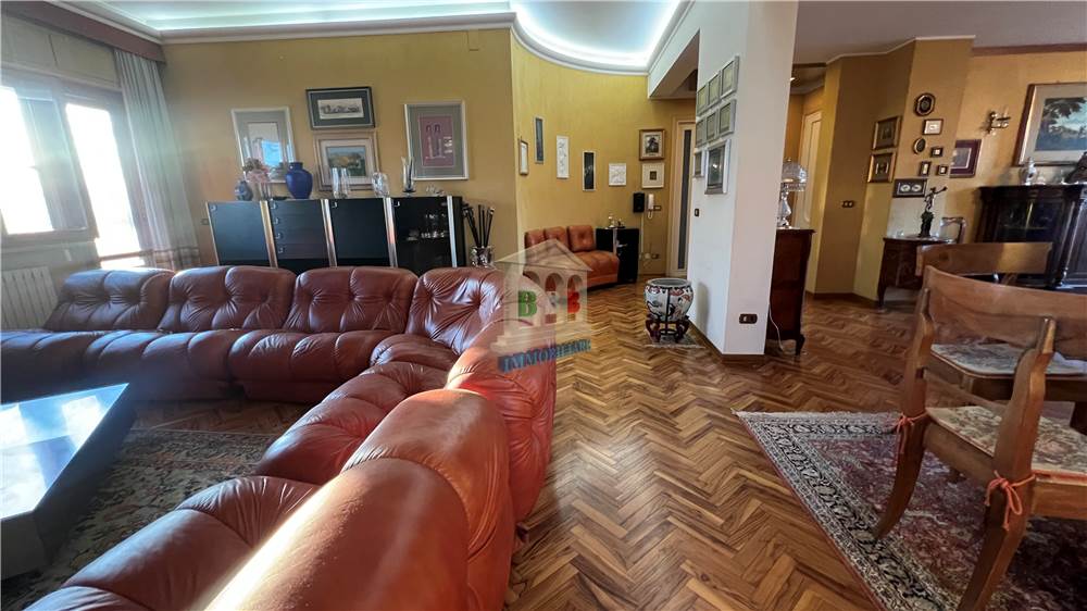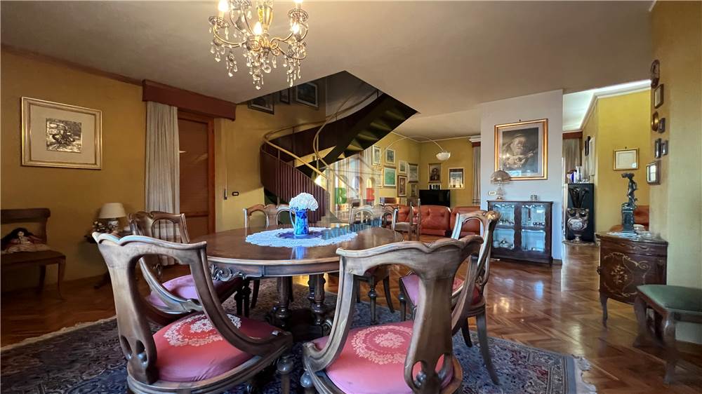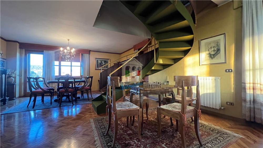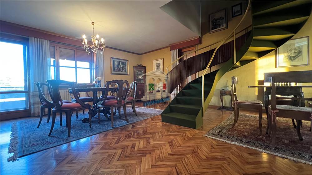 Piano primo: elegante appartamento di rappresentanza disposto su due livelli, composto da una scenografica zona giorno di circa 150 mq, veranda di circa 40 mq e terrazzi per ulteriori 200 mq, con sovrastante mansarda di circa 90 mq.