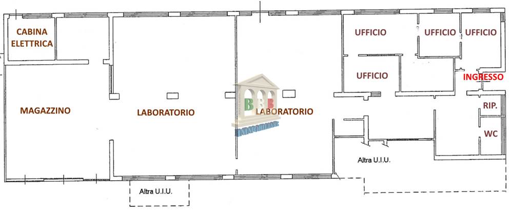 Piano terra: destinato a magazzini, laboratori e uffici, per una superficie complessiva di circa 390 mq, ideale per attività produttive, logistiche o artigianali;