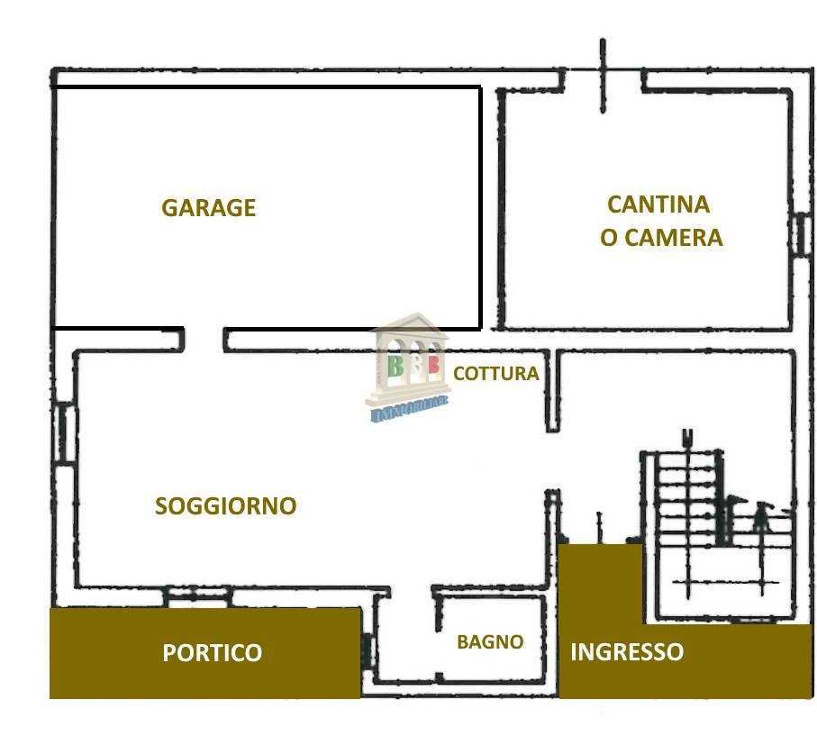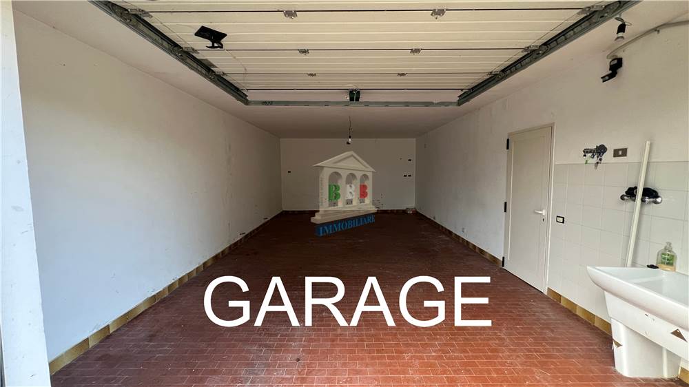 La zona notte comprende tre camere da letto e tre bagni finestrati. Il piano terra ospita un ampio salone rustico con camino ed angolo cottura, un bagno, una stanza di circa 26 mq e un garage di 35 mq dotato di porta sezionale motorizzata e telecomandata. Questo livello, con interventi contenuti, può essere riorganizzato per la realizzazione di una seconda unità abitativa indipendente.